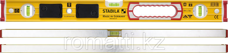 Прочный,прямоугольный профиль из легкого металла с рёбрами жёсткости. Две отфрезерованные измерительные поверхности, внутренняя ручка для захвата. Запатентованные быстросъёмные колпачки. Одна горизонтальная и Одна вертикальная пузырьковые камеры с подсветкой. Дополнительно: Вторая вертикальная пузырьковая камера.
